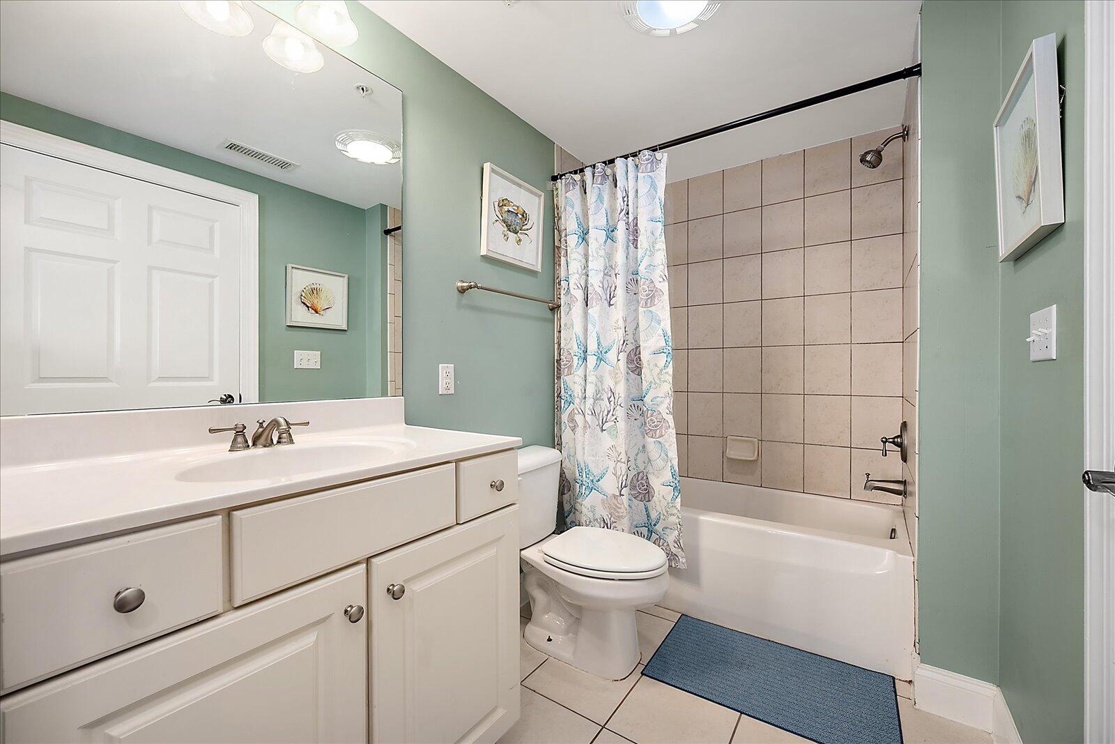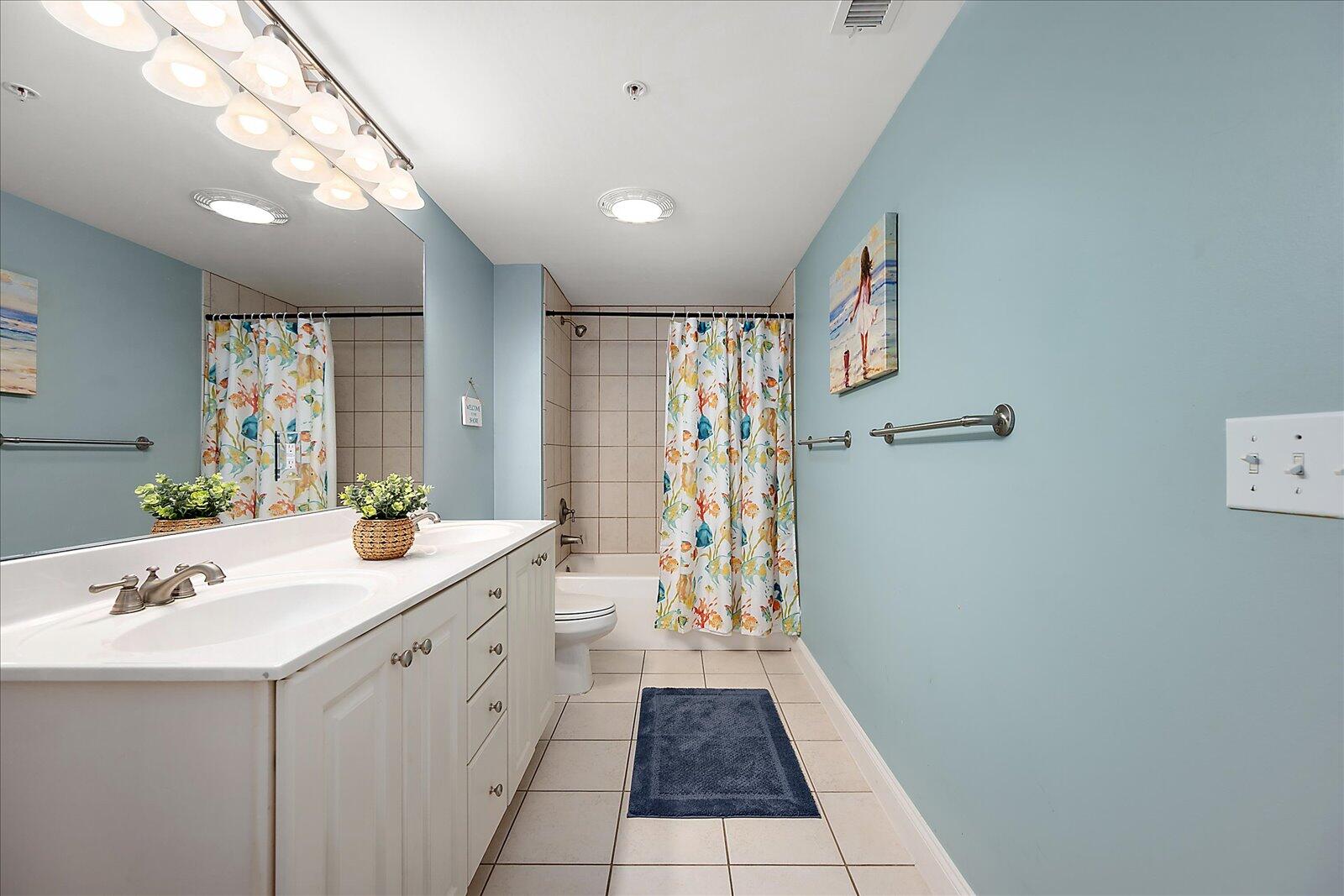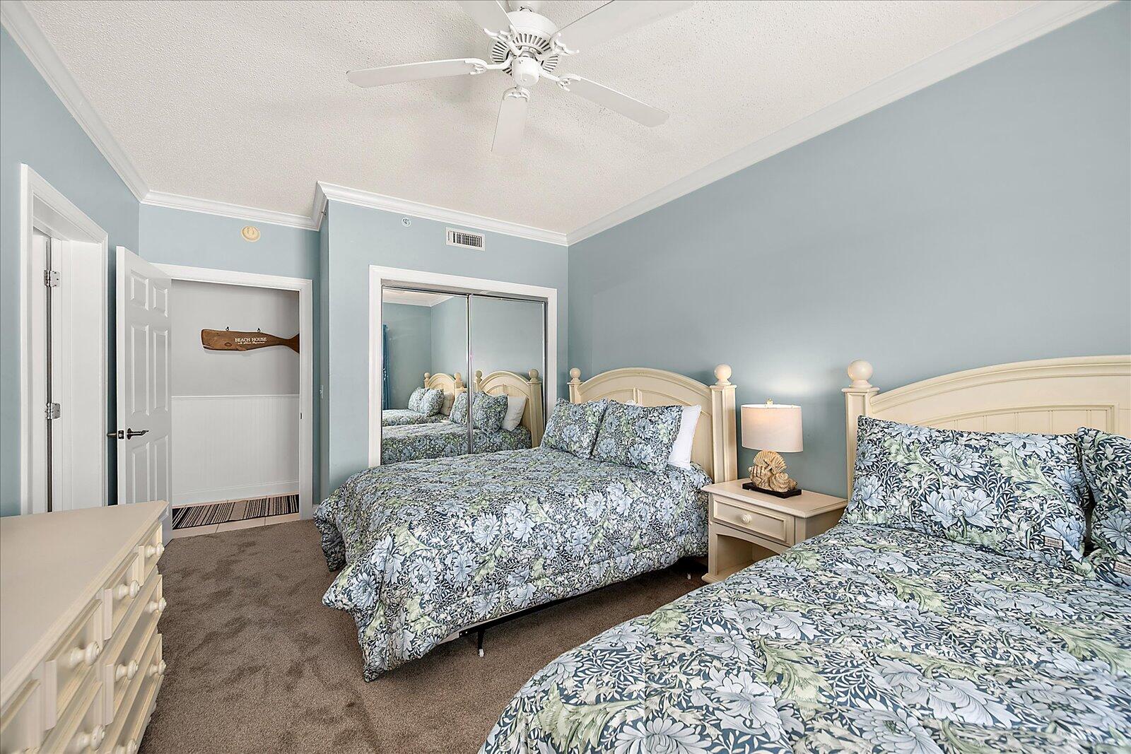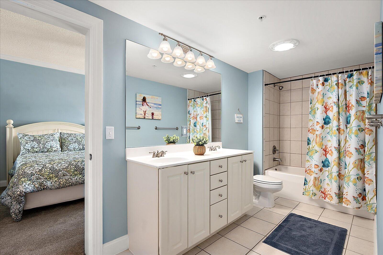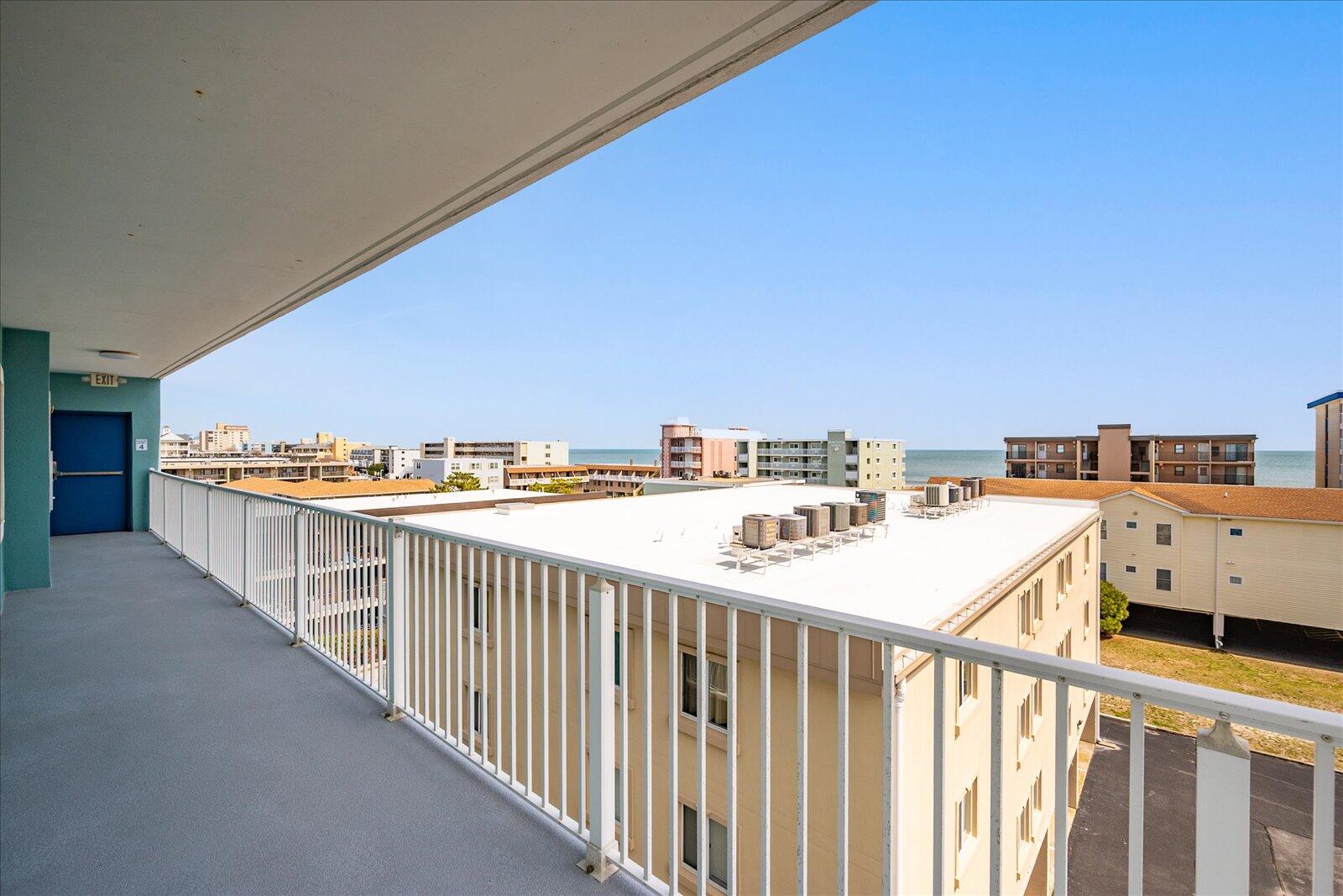 Enjoy both ocean and bay views from this well-appointed unit, designed for relaxing beach vacations. The open living space is bright and inviting, featuring brand-new family room furniture for 2026, including two full-size sofas—perfect for gathering after a day in the sun. Step outside to a large private balcony complete with an outdoor dining table and Adirondack chairs—perfect for morning coffee or evening relaxation. Stay entertained with 5 TVs equipped with streaming services and 3 DVD players throughout the condo.