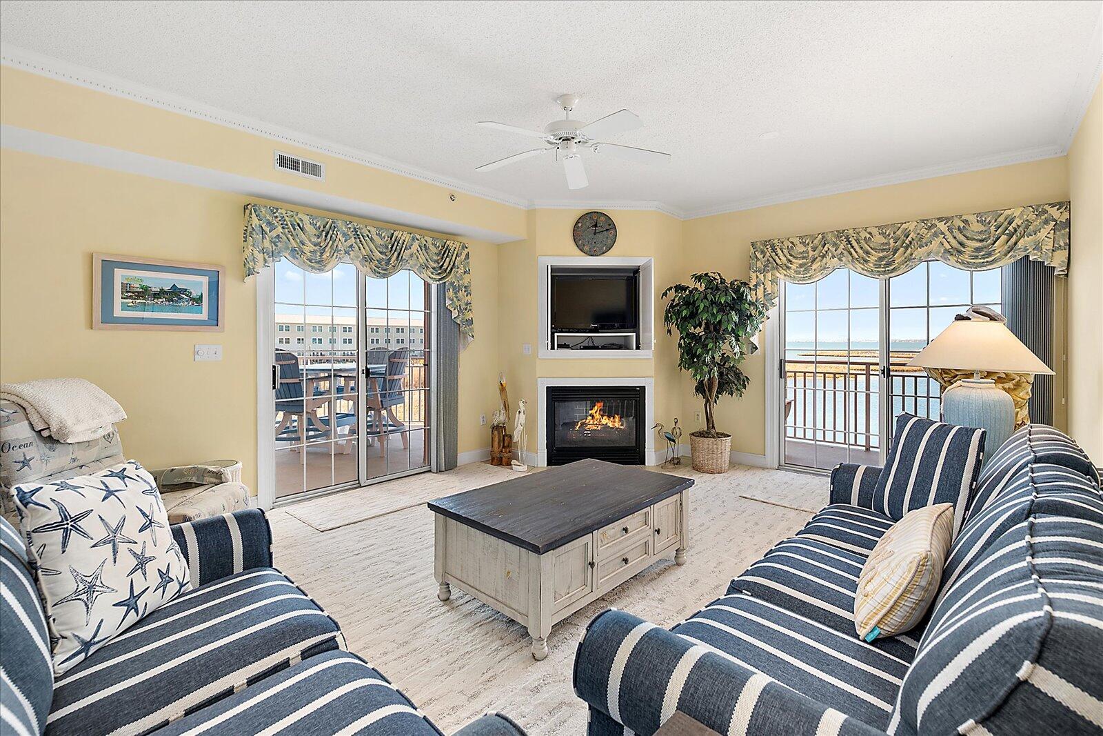 Experience waterfront living at its finest in this beautifully appointed 3-bedroom, 2-bath bayfront retreat. Enjoy breathtaking sunset views each evening from your private balcony, complete with comfortable outdoor furniture—perfect for relaxing or entertaining. Inside, the home offers a spacious and inviting layout, along with four TVs equipped with streaming capabilities and complimentary WiFi, ensuring everyone can stay connected and unwind with their favorite shows. Whether you're hosting guests or enjoying a quiet getaway, this property is designed for comfort and convenience. Residents also have access to a community outdoor pool, adding to the resort-style feel of this exceptional location. The property includes two dedicated parking spaces for added ease and accessibility. With direct bay views, modern amenities, and serene surroundings, this is coastal living you won’t want to miss. This is a non-smoking property and pets are not permitted. Please note: sheets, towels, paper products, and cleaning supplies are not provided. A linen package including sheets and towels can be rented for an additional fee.